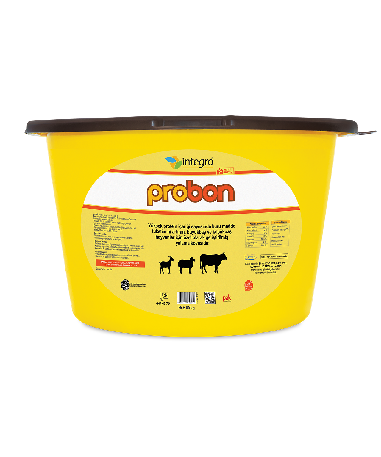 Thanks to the balanced and highly bioavailable protein in its content, it helps animals get the protein they need. Probon is a molasses-based lick block. The protein composition of Probon consists of amino acids and polypeptides.